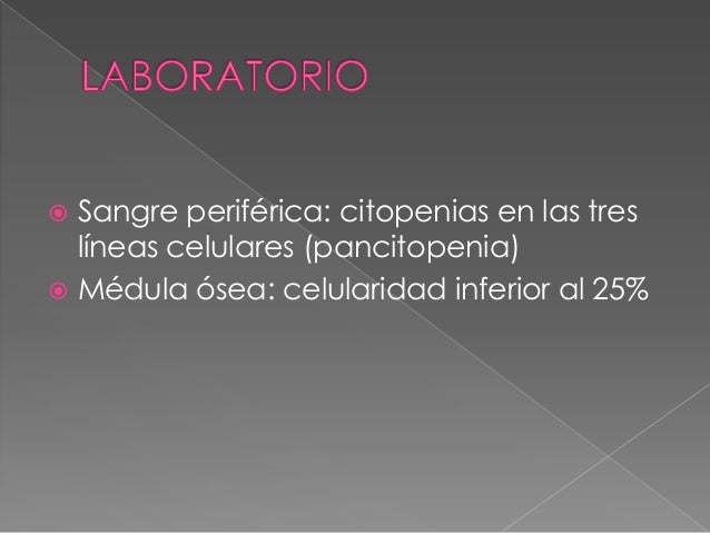 Anemia aplasica from image.slidesharecdn.com A anemia aplástica é um tipo de alteração da medula óssea e, consequentemente do sangue, caracterizada pela diminuição da quantidade de hemácias, leucócitos e plaquetas circulantes, caracterizando o quadro de pancitopenia. La anemia aplásica involucra una panhipoplasia de la médula ósea con anemia, leucopenia y trombocitopenia asociadas. 8 a diferencia de la anemia de fanconi.